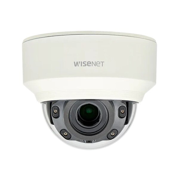 Wisenet X powered by Wisenet 5 network indoor vandal dome camera, 2MP, Full HD(1080p) @60fps, motorized vari-focal lens 3.1x (3.2~10mm) (109°~33.2°), triple codec H.265/H.264/MJPEG with WiseStream II technology, 120dB WDR, USB port for easy installation, high powered IR LEDs range of 98.43', true D/N, single SD card, hallway view, HLC, defog detection, DIS, PoE, IK08