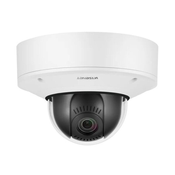 Wisenet X series Plus powered by Wisenet 5 network outdoor vandal dome camera, modular structure, 5MP @ 30fps, motorized vari-focal lens 2.6x (3.6~9.4mm) (102.5°~38.7°), PTRZ, triple codec H.265/H.264/MJPEG with WiseStream II technology, 120dB WDR, USB port for easy installation, advanced video analytics, sound classification and business analytics, shock detection, audio playback, true D/N, dual SD card, hallway view, HLC, defog detection, DIS (Gyro), 12VDC/PoE, optional 24VAC, IP67/IP66/IP6K9K, IK10+, Nema 4X, -50°C ~ +60°C (-58°F ~ +140°F), white color, ivory skin included, optional black skin cover